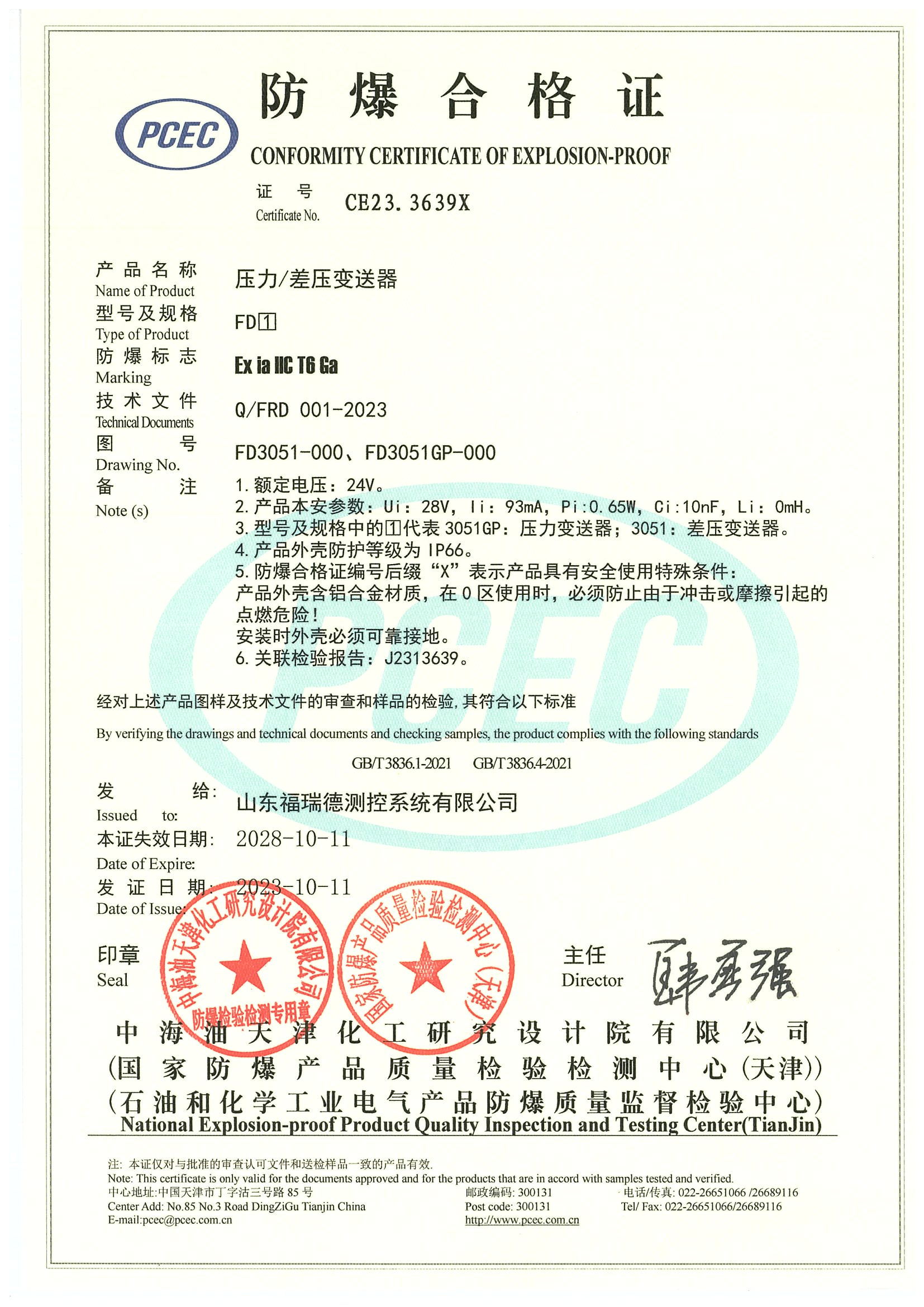 FD3051S防爆证-本安